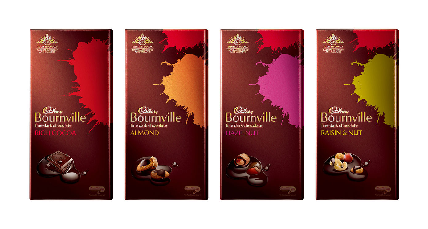 The Cadbury Bournville is a premium chocolate. The packaging needed to whisper luxury, look classic yet convey contemporary elegance. At the same time each variant had to distinguish itself from the rest of the flavours, while the whole line had to have an incredible shelf throw to stand out among the crowded confectionery aisle in supermarkets.