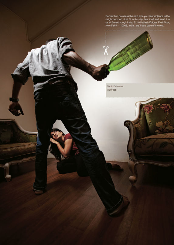 In 2010, nearly 40 percent of all assaults reported in India were domestic violence related. Breakthrough, an NGO that works to liberate victims of domestic violence approached us to create a print campaign that urged readers to report crimes. We created an interactive print campaign that literally snatched weapons from abusers.